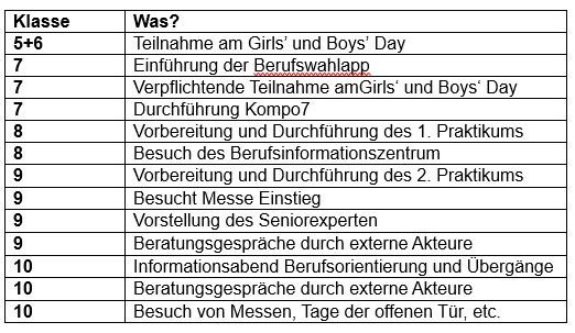 Kurzübersicht zu den Maßnahmen im Bereich der beruflichen Orientierung: