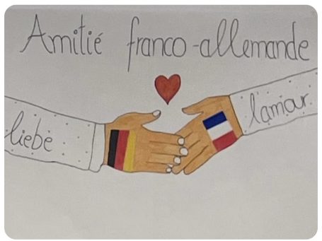 Darüber hinaus werden natürlich französische Feste gefeiert und Plakate erstellt, wie zum Tag der deutsch-französischen Freundschaft – l’amitié franco-allemande (siehe Foto), oder auch Crêpes sowie Quiches gebacken.