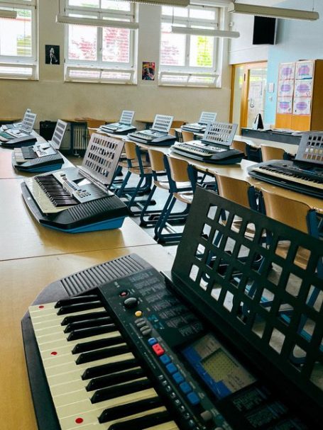 Die Musikfachschaft der Geschwister-Scholl-Realschule steht für einen lebendigen und praxisnahen Unterricht, der die Freude am Musizieren in den Mittelpunkt stellt. Eine Vielzahl an Instrumenten und umfangreiches Musikequipment ermöglichen den Schülerinnen und Schülern vielfältige musikalische Erfahrungen.